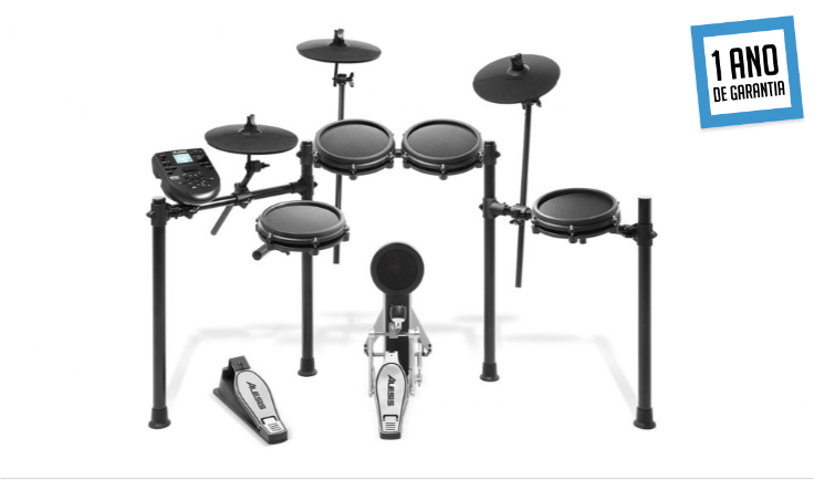 Kit de bateria eletrônica de 8 peças com peles Mesh, mais de 300 sons, pedal de bumbo e rack. Pegada Premium e Dinâmica Natural. Sinta a Diferença que o Mesh Pode Fazer O Alesis Nitro Mesh Kit é um completo kit de bateria eletrônica de 8 peças com a tecnologia de última geração de peles Mesh da Alesis. Peles em Mesh são as favoritas dos bateristas quando tocam em baterias eletrônicas, por conta da sua pegada natural e resposta ultra silenciosa. A Alesis Nitro Mesh possui 1 caixa mesh dual-zone de 8 e 3 toms mesh. Conta com tudo o que você precisa para ter um kit completo de bateria; 3 pads de prato de 10, pedais customizados de hi-hat e pedal. Conta também com um durável rack de alumínio 4 pés. Inclui todos os cabos, fonte de energia e chave de afinação para uma instalação simples. Tudo conectado no poderoso módulo de bateria eletrônica Nitro com centenas de sons de percussão, 40 kits diferentes e 60 faixas de música.
