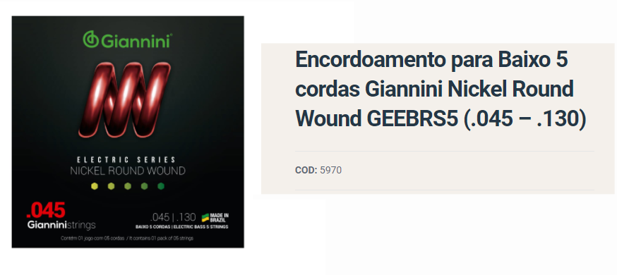 Encordoamento Gianinni Baixo GEEBRS/5 - 5C 0.45