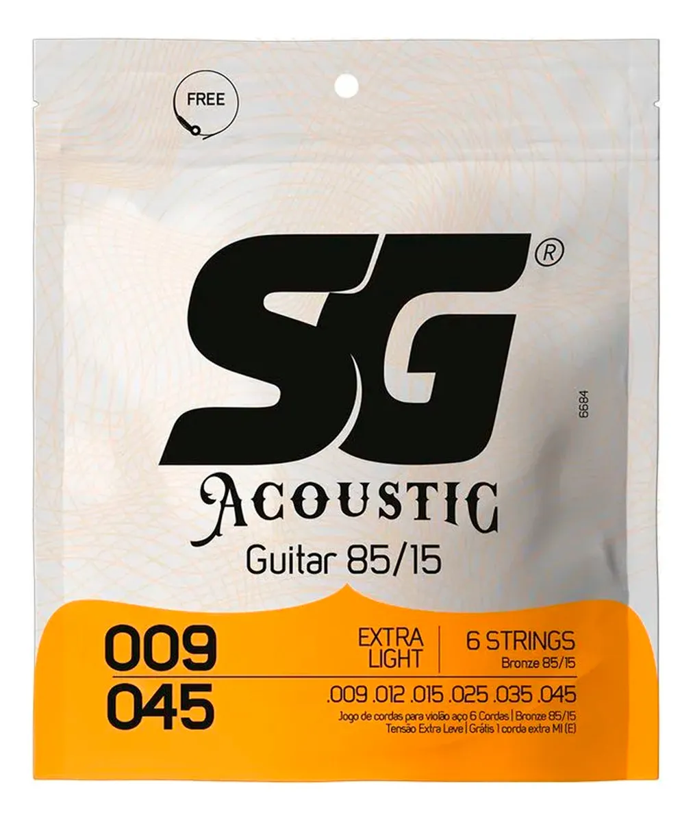 As cordas de tensão Light são ideais para músicos que não utilizam muita pressão nas mãos ou que prefiram uma sonoridade mais quente, porém suave. Em solos ou palhetadas, o timbre é sempre limpo e contagiante, seja qual for o estilo musical. Encordoamento que, além de um equilíbrio sonoro sensacional, traz a verdadeira sensação do folk. Com timbre quente e brilho enriquecido, a linha 85/15 traz a matéria-prima mais equilibrada (em questão de durabilidade, conforto e som) dentre as usadas para instrumentos acústicos. Medidas para uso em escala com comprimento de 25 ½” / 648mm. Cordas primas em aço estanhado cilíndrico. Bordões com revestimento de bronze 85/15 e núcleo hexagonal de aço estanhado.