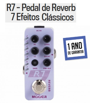 Pedal MOOER R7 Reverb c/ 7 efeitos clássicos